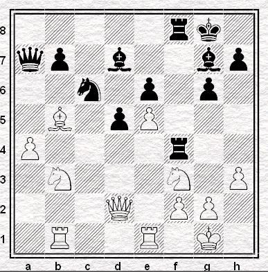 --Albert kon Roelof een tijdje bijbenen, maar vanaf de 15e zet, toen hij gedwongen werd een paard terug te halen naar de onderste rij, werkten zijn stukken niet goed meer samen. Wit slaagde erin dat ongemak bij zwart geruime tijd te laten duren, zolang zelfs dat toen Albert weer wat houtjes in stelling kon brengen, het eigenlijk al te laat was. HIj deed als de spreekwoordelijke kat in het nauw nog wat rare sprongen, maar wit regeerde steeds sterk en zette zwart op de 36e zet mat.